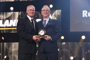 Landstar President and CEO Jim Gattoni with Landstar Vice President of Systems Integration Robert Sentgerath.Landstar Vice President of Systems Integration Robert Sentgerath was honored with this year’s Landstar Outstanding Management Achievement Award. Sentgerath joined Landstar 20 years ago and, in 2016, began working on the initiative to provide the infrastructure, technology and staffing to modernize all of Landstar’s technology and processes. He is an instrumental part of the team designing and implementing Landstar’s new transportation management system (TMS) for its independent agents.